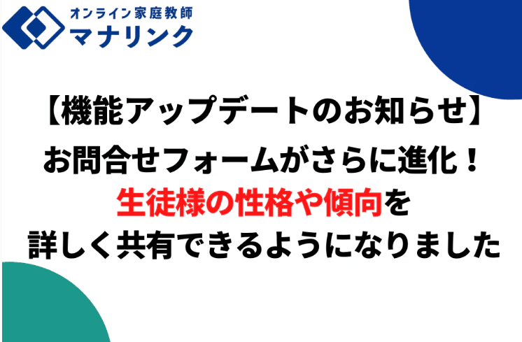 生徒さんや親御さんから悪い口コミが出ていないのも、「怪しい」と出てくるのもマナリンクが新しいサービスだからです。